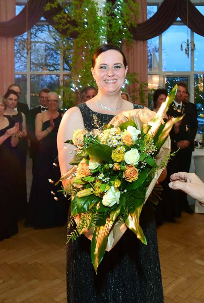"Frau Königin" freut sich über den seitens der Schießabteilung überreichten Blumenstrauß