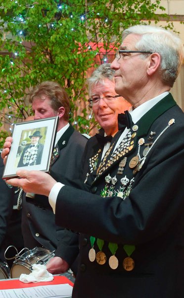 Gleichzeitig war der Königsball auch eine Verabschiedung für den damaligen Schützenmeister und jetzigen Ehrenschützenmeister Karl-Heinrich Belte und seiner Frau Anita sowie seinem Vertreter Horst Bockemüller. Im Amt des Schützenmeisters folgte im Juni Werner Mix und Jürgen Teschke als sein Vertreter.